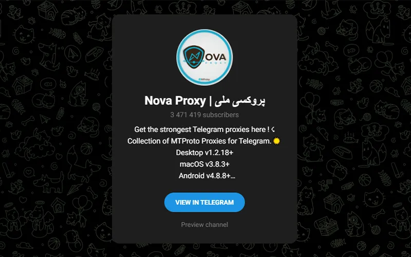 کانال تلگرامی پروکسی ملی | Nova Proxy یکی از معتبرترین و پرمخاطب‌ترین مراجع ارائه پروکسی‌های MTProto در تلگرام است که با تمرکز بر پایداری و قدرت اتصال فعالیت می‌کند. این کانال با جامعه آماری چندمیلیونی، پروکسی‌هایی سازگار با انواع پلتفرم‌ها از موبایل تا دسکتاپ ارائه می‌دهد و به‌روزرسانی منظم را در اولویت قرار داده است.