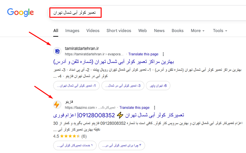 برای مثال زمانی که در گوگل کلمه لوله بازکنی در غرب تهران را سرچ کنیم، دو وبسایت ایران تجارت و وبسایت لوله بازکنی تهران به دلیل سئو محلی قوی جزو دو رتبه اول قرار دارند.